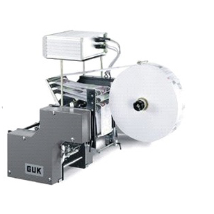 ロール紙繰り出し、レジマーク検知、カット、折り、排出まで行う添付文書折機です。